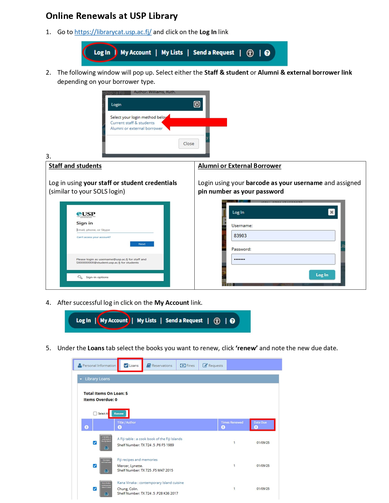 To avoid being charged fines we advise you to return your items on time. If you are unable to do this please contact the Reader Services Librarian – Services on askalibrarian@usp.ac.fj as soon as possible to find out what to do next.