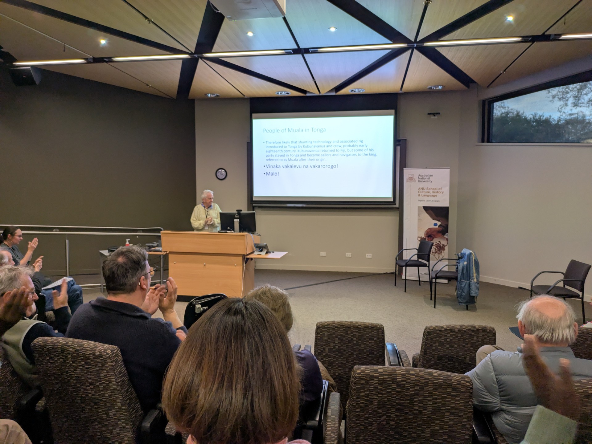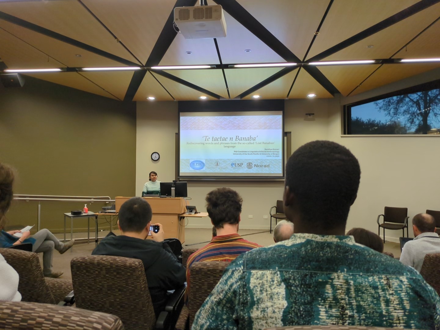 Presentations from USP Linguistics and Languages were given by Sandhya Kumari (“Rediscovering words and phrases from the so-called ‘Lost Banaban’ language”); Paul Geraghty (“Linguistic evidence for the spread of marine technology in the Pacific” and – with colleagues – “Turmeric and bark cloth connections between Northern Outliers and East Polynesia”); and Harriet Sheppard (“Multimodal representation of theme in the expression of caused accompanied motion events” with colleagues).