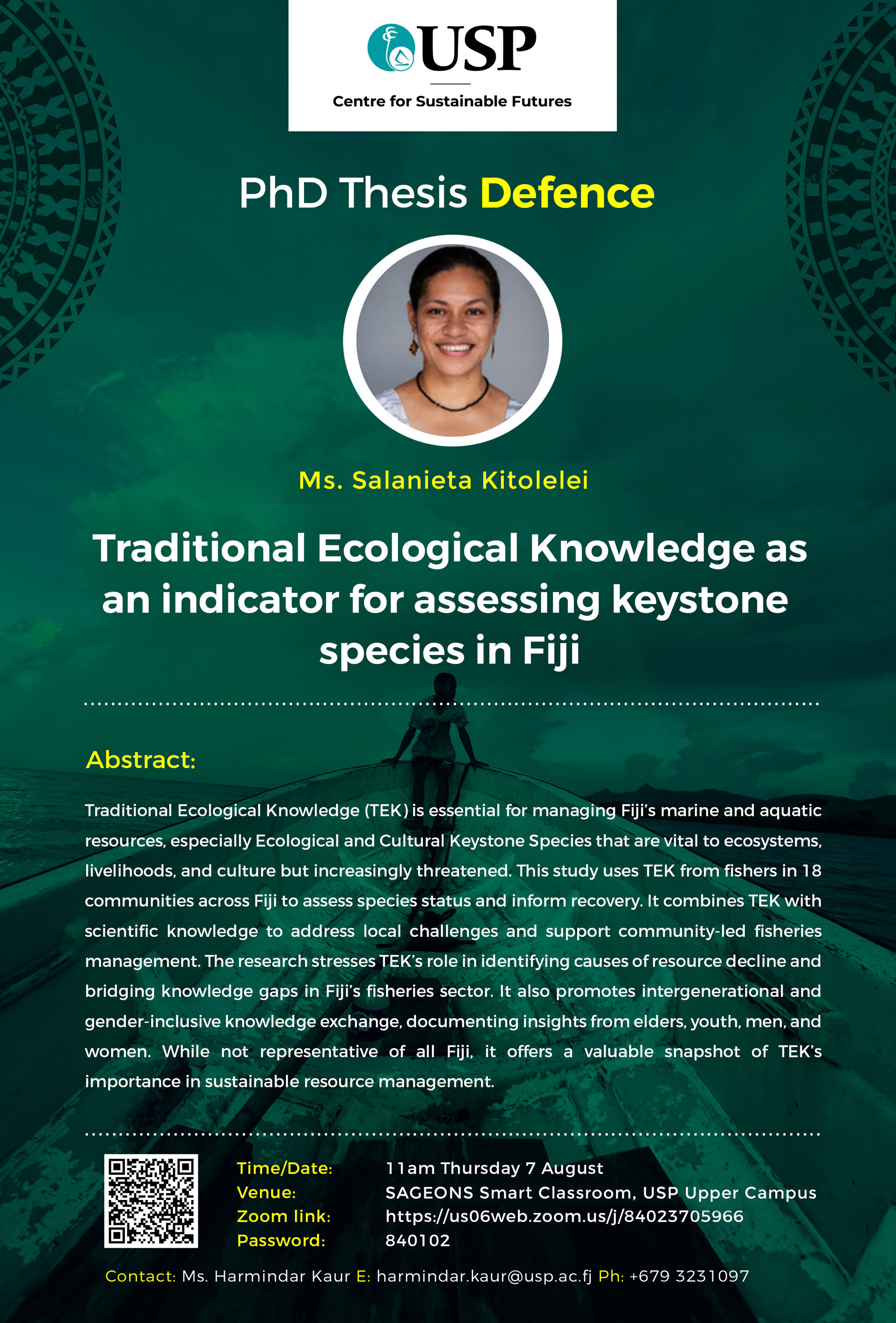 Dr Salanieta Kitolelei – Traditional Ecological Knowledge As An Indicator For Assessing Keystone Species In Fiji