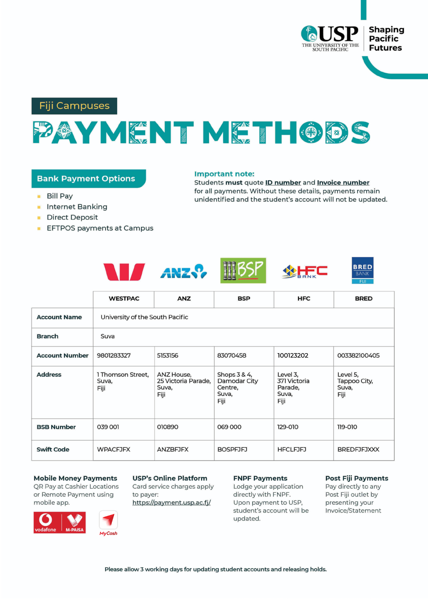 2025 Fees Pacific Technical and Further Education – Pre-Degree Face-To-Face/Blended Mode