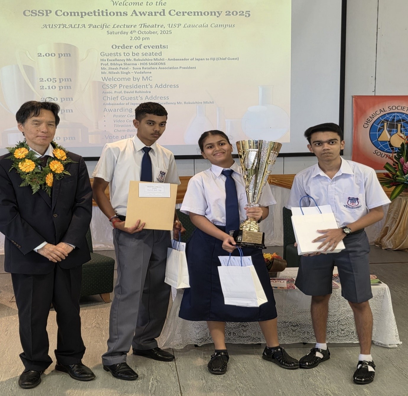 The Chief Guest for the occasion was His Excellency, Honourable Mr. Rokuichiro Michii, Ambassador Extraordinary and Plenipotentiary of Japan to Fiji. In his address, Ambassador Michii praised the CSSP’s commitment to education and scientific development in the region, emphasizing the role of international collaboration in advancing Pacific science.